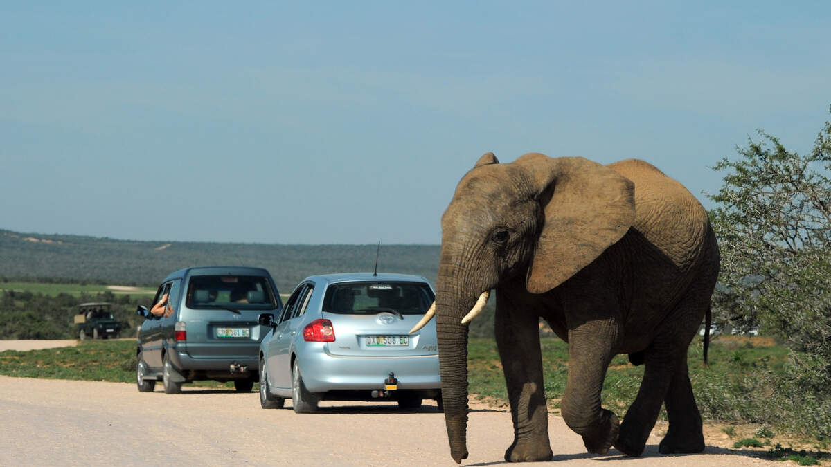 An elephant crosses a road at Addo Eleph